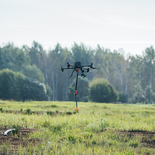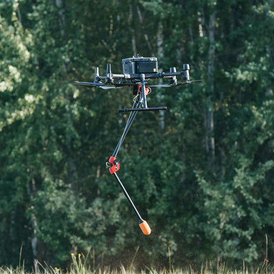 MAGNETOMETRÍA AÉREA CON DRONES Sistema de magnetometría integrado para drones ultrasensible, alimentado por sensores magnetométricos atómicos de campo total QuSpin Gen-2. Las aplicaciones típicas de la magnetometría en dron son: Búsqueda de UXO (artefactos explosivos sin detonar) y minas terrestres en carcasas metálicas Detección de partículas metálicas y pérdidas GET (herramientas de intervención en tierra) Localización de infraestructuras enterradas (tuberías metálicas y cables apantallados) Prospección medioambiental de pozos, tuberías y depósitos abandonados de forma rápida y con un posicionamiento preciso Geología y prospección de minerales: prospección de variaciones regionales del campo magnético Arqueología ESPECIFICACIONES El diseño exclusivo del sistema permite volar con una distancia extremadamente reducida entre la superficie y el sensor, a partir de unos veinte centímetros. Si el sensor toca el suelo o un obstáculo/vegetación, el dron no se estrellará. Esta capacidad es extremadamente importante para la búsqueda de pequeños artefactos explosivos no detonados en campos con vegetación. La montura auto plegable del sensor permite un fácil despegue y aterrizaje sin excesivos requisitos para la cualificación del operador del dron, como ocurre con los sensores magnéticos en las cuerdas de suspensión. Variantes del sistema MagNIMBUS se presenta en dos configuraciones posibles: Gradiómetro vertical. Esta configuración simplifica enormemente el procesamiento de datos y hace innecesaria la estación base magnética. Configuración con sensor único con soporte plegable. Las capacidades de detección son las mismas que para la configuración con gradiómetro, pero requiere especialistas experimentados para el procesamiento de datos, se recomienda la estación base magnética en caso de estudios en proximidad de fuentes de campos magnéticos. Componentes principales del sistema: Drones recomendados: DJI M350 RTK/M300 RTK. El kit estándar viene con todos los montajes/cables para este dron. Integraciones para otros tipos de drones, incluyendo los basados en Pixhawk, están disponibles bajo petición. Soporte plegable con sensor de campo magnético QuSpin Gen-2 incorporado. Mástil con sensor QuSpin Gen-2 para configuración de gradiómetro vertical. Ordenador de a bordo SkyHub - actúa como registrador de datos para sensores de campo magnético e implementa el modo de seguimiento del terreno para drones DJI. Altímetro (láser o radar). Software de planificación/gestión de vuelo UgCS Expert. Software recomendado para el tratamiento de datos: Geosoft Oasis Montaj. VIDEOS DESCARGAS DESCARGAR DATASHEET